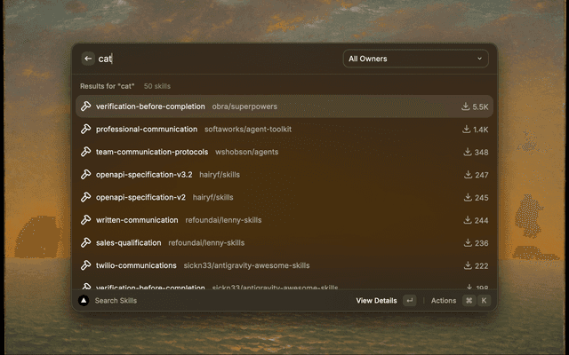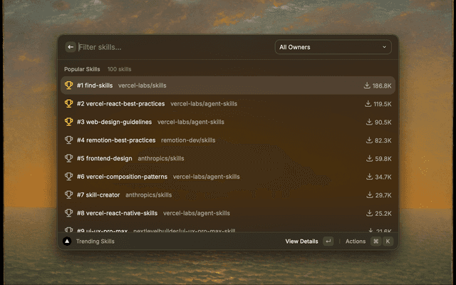 Browse, search, and manage AI agent skills from Skills directly in Raycast.