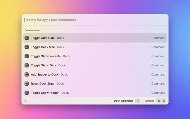 - Toggle Auto Hide Delay: Set dock auto-hide time delay.