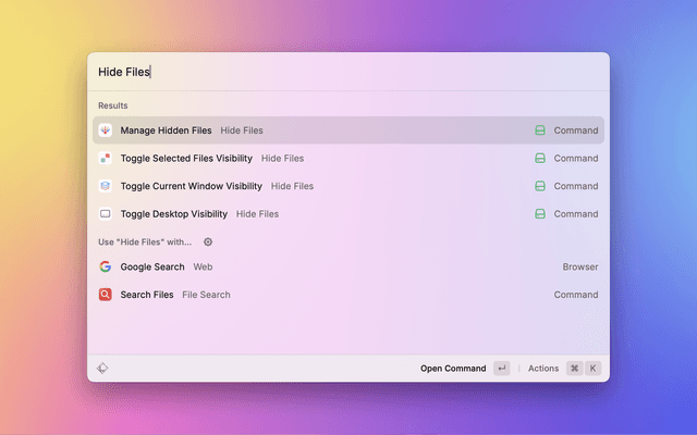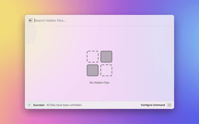 - 🌟🌟🌟But you can always use the shortcut " ⇧+⌘+. " or Raycast build-in Toggle Hidden Files command to see all system hidden files.