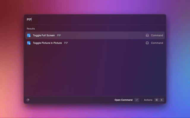 To use PiP just run the Toggle Pip command when you're watching to an HTML5/IINA video (Note: You need to interact with the video once. If it's autoplaying just pause and play again)
