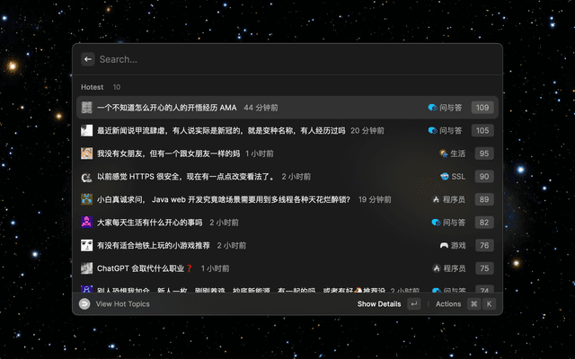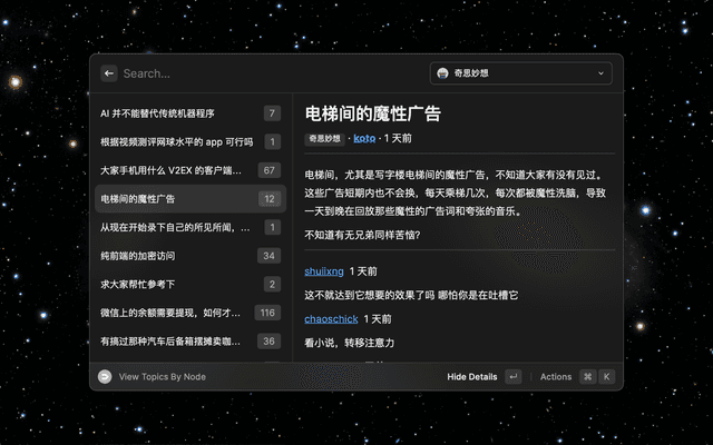 A simple v2ex viewer for Raycast.