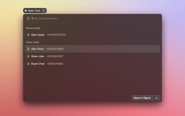 quickly access already existing chats. Until Signal provides a public API, the Add Chat
