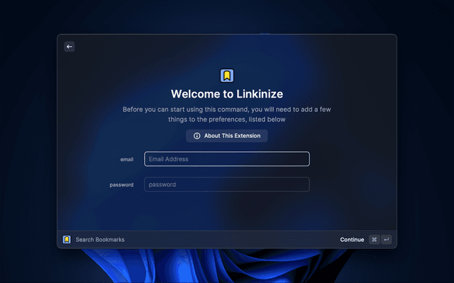 Linkinize Raycast extension makes it easy to access your bookmarks without leaving your screen.