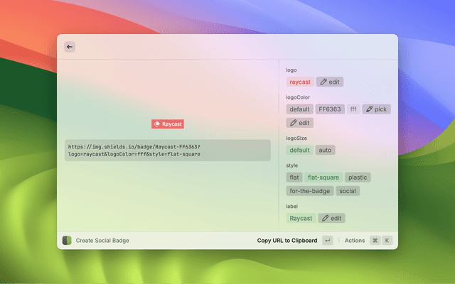 The logo feature requries Brand Icons extension, and the color picker feature requires Color Picker.