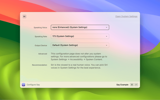 You can go to macOS System Settings or Windows Settings to download new voices and get more advanced configurations.