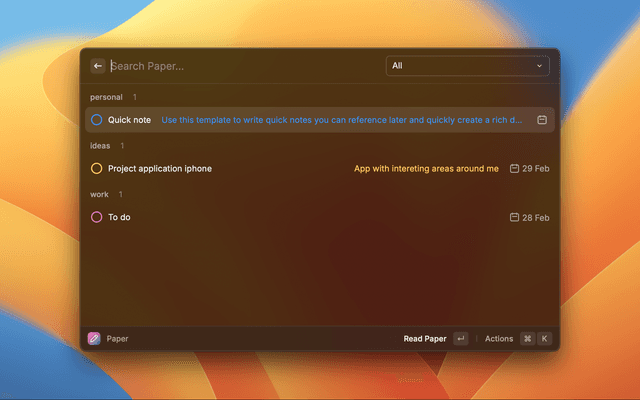 Create and organize your ideas, work etc.. In Markdown files by category