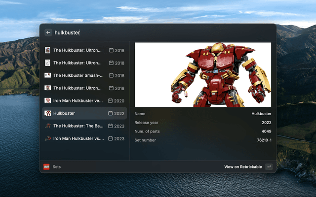 Look up LEGO sets, colors, bricks etc.