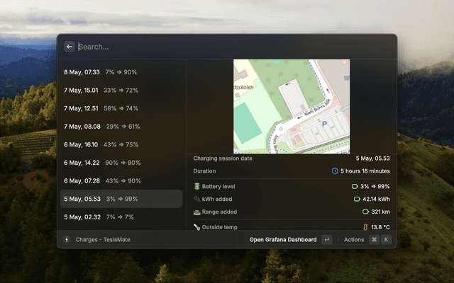 Raycast Extension to retrieve info about your Tesla from your TeslaMate instance.