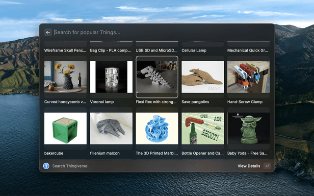 Browse Thingiverse models from Raycast. Using the official Thingiverse API.