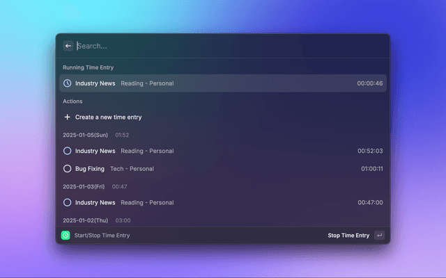 - By pressing "Enter" on a time entry, you can start/stop the time entry.