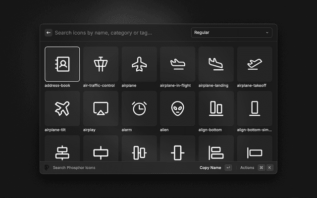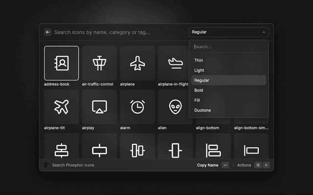 Search, preview and copy Phosphor Icons.