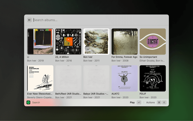 Spotify's most common features, now at your fingertips. Search for music and podcasts, browse your library, and control the playback. Glance at what's currently playing directly from the menu bar.