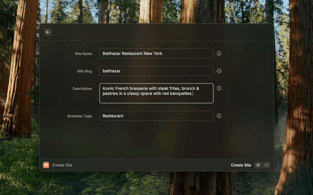 - Create Site: Quickly set up a new website