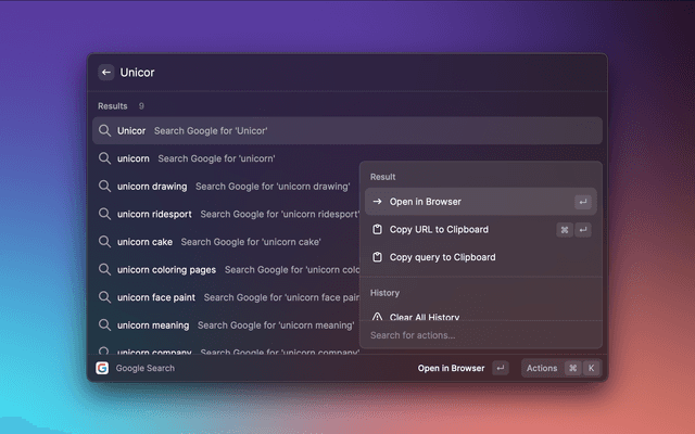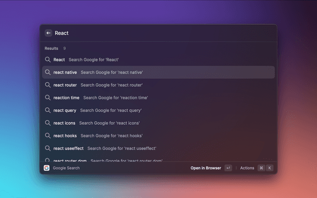 Google search with autosuggestions is an extension for Raycast.