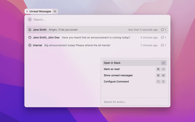 This Raycast extension is the perfect companion for Slack users. It allows you to:
