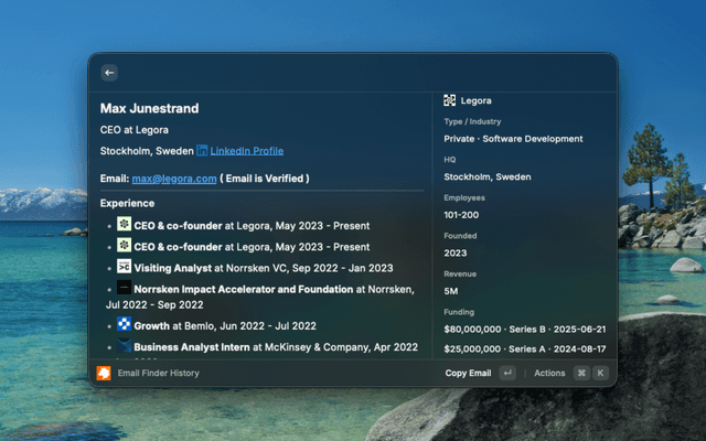 Find the verified email address of any professional.