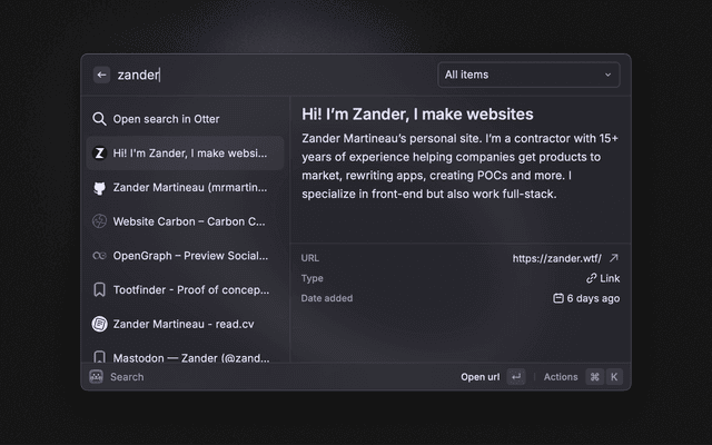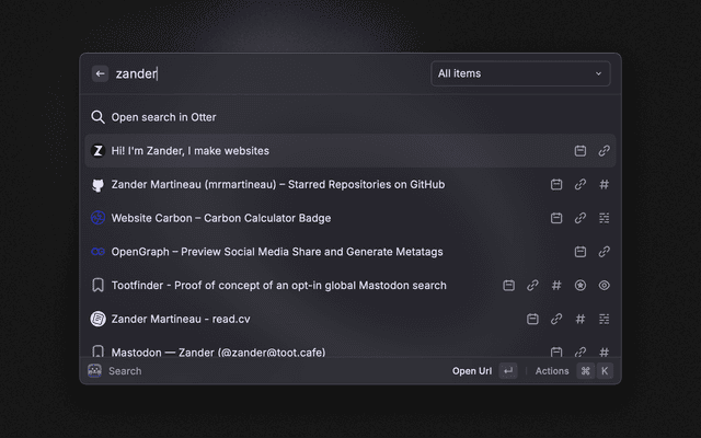 Raycast extension for Otter bookmarks, a self-hosted bookmarking app created by Zander Martineau