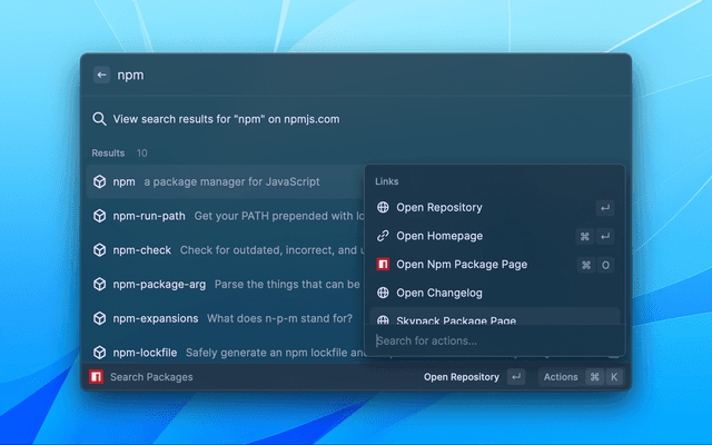 Raycast extension to search and favorite npm packages