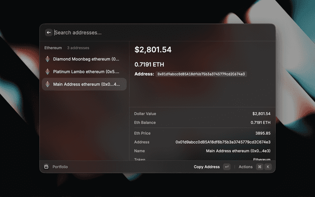 Add Crypto wallets by their addresses and track your entire Crypto portfolio.