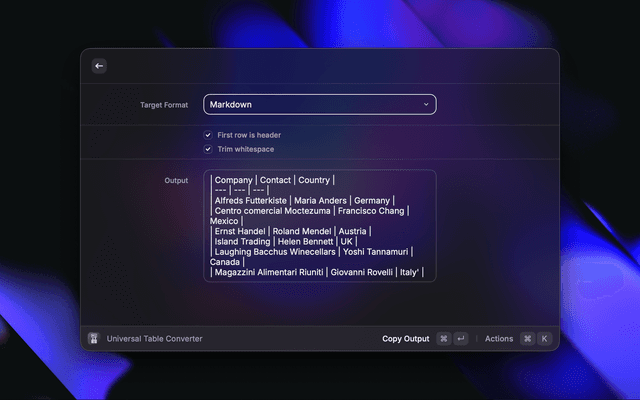 - Open Universal Table Converter: Run the command in Raycast.
