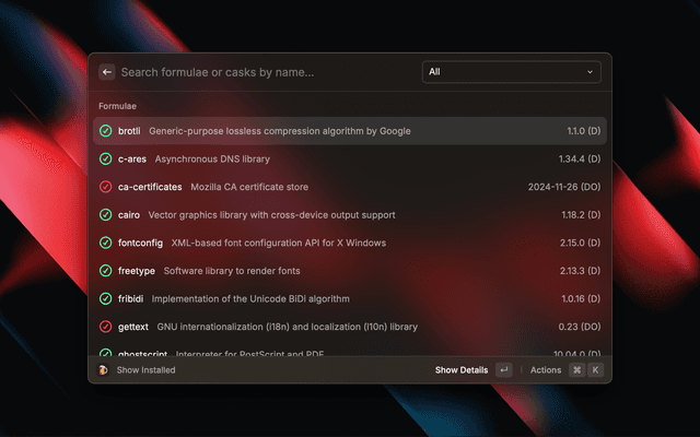 Search and manage your brew casks and formulae from Raycast.