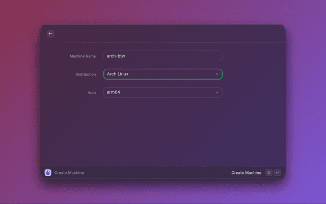 orbctl (which this extension uses) prompts the user for a password during machine creation. We can't 'answer' the prompt via the raycast API. Use orbctl or orb cli if you need to set a username with password when creating a machine. Example: orbctl create -u <user> -p <distro> <machine-name>.