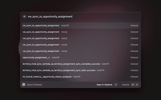 Search and explore datasets in your DataHub data catalog directly from Raycast.