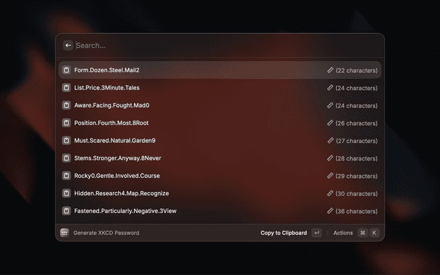 Generate strong passwords according to the "xkcd" style: https://xkcd.com/936/