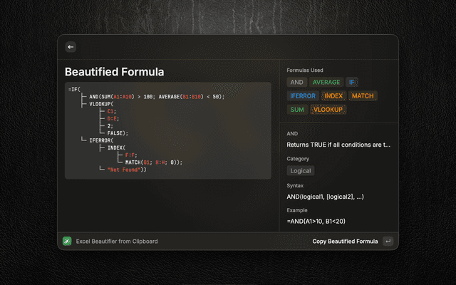 • Live Input: Type or paste a formula and see it beautified instantly, with error feedback as you go.
