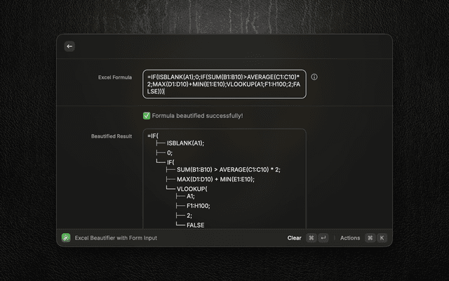 - Live Input: Type or paste a formula and see it beautified instantly, with error feedback as you go.