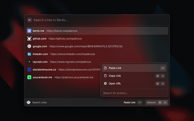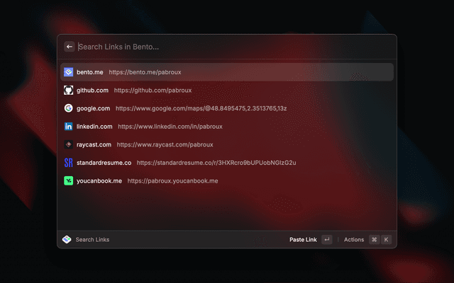 Access a Bento profile directly from Raycast.