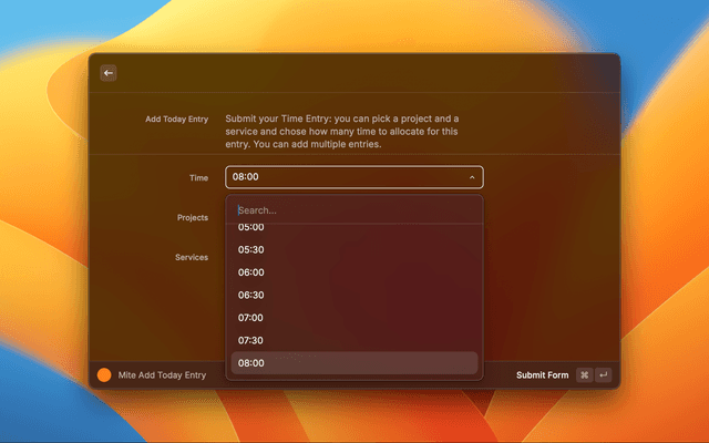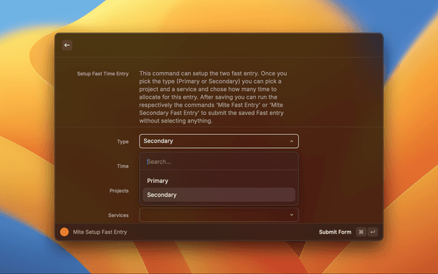 Your mite domain, should be something like https://[company].mite.de Your can find your mite API Key on My User > mite.api > Allow API Access > Display API key (you need to save after to actually apply)