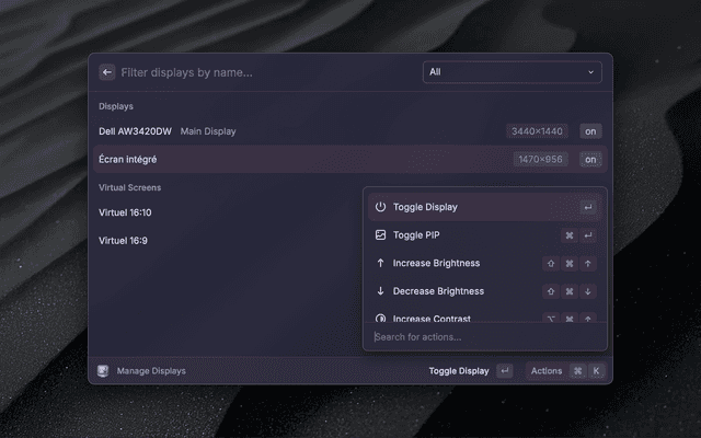 This extension allows you to control your display using BetterDisplay from the comfort of Raycast.