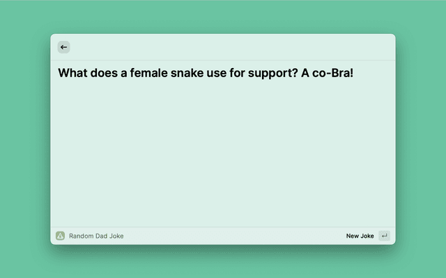A Raycast extension that delivers random dad jokes to brighten your day. Perfect for when you need a quick laugh or want to share some wholesome humor with your team.