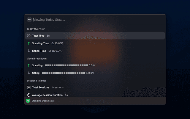 3. View Stats: Open "Standing Desk Stats" to see detailed statistics for different time periods