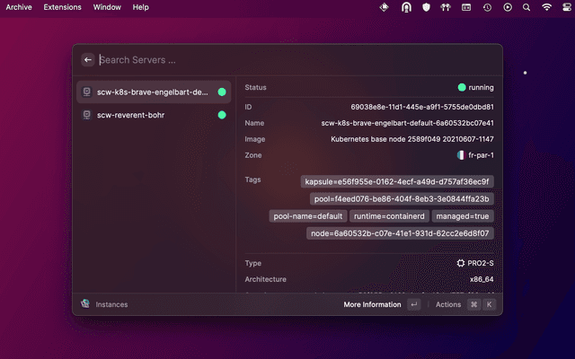 Raycast extension to search containers, database, instances or Redis clusters, to perform actions, and more to come.
