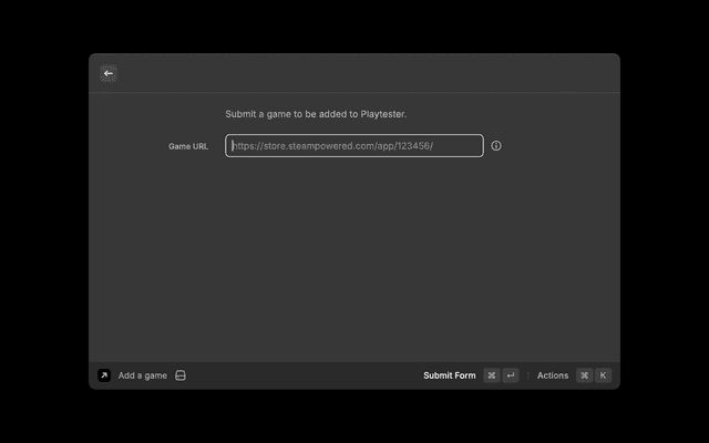 This Raycast extension provides quick and convenient access to Playtester’s database of indie games right from your desktop.