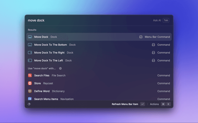 The extension includes a MenuBar command that is disabled by default. For easy access to commands via MenuBar, enable it in Preferences.