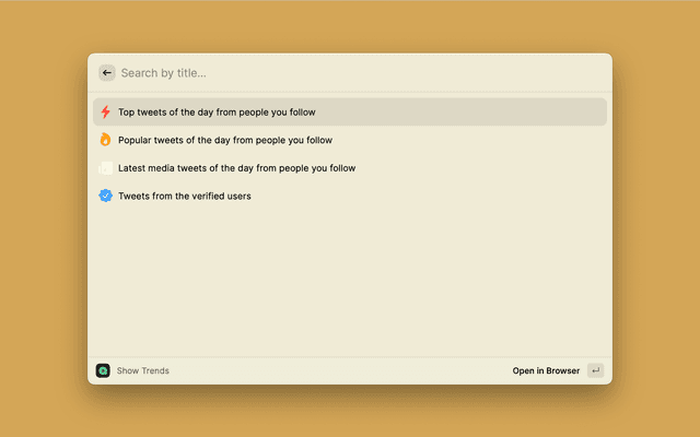 Spotify's most common features, now at your fingertips. Search for music and podcasts, browse your library, and control the playback. Glance at what's currently playing directly from the menu bar.