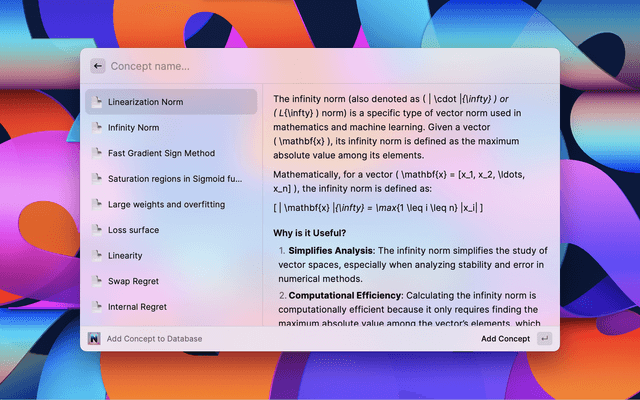 Enhance your research and learning journey with this powerful Raycast extension for Notion. This extension offers two primary features: Adding a Concept and Adding a Paper to your Notion workspace.