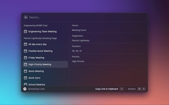 - Open Raycast on your desktop & select any Reclaim command.