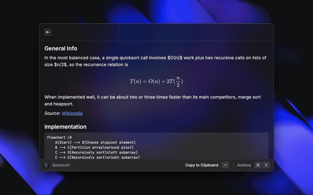 - Search for any snippet in your SnippetsLab library directly from Raycast.