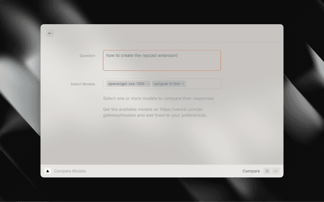 A Raycast extension that integrates the capabilities of Vercel AI Gateway directly into Raycast.