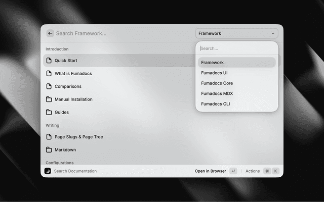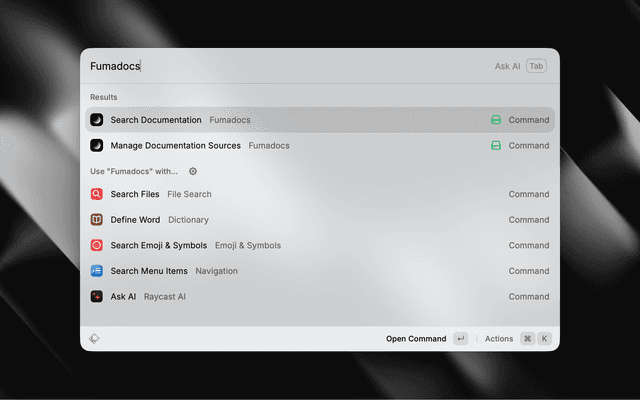A Raycast extension to search and browse Fumadocs documentation.