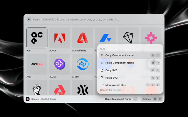 The Raycast extension to search AI / LLM brand SVG logos and icons from LobeHub Icons.