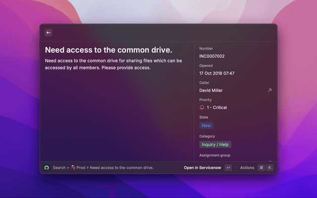 The ServiceNow Raycast Extension allows you to easily search and explore content across your ServiceNow instances.