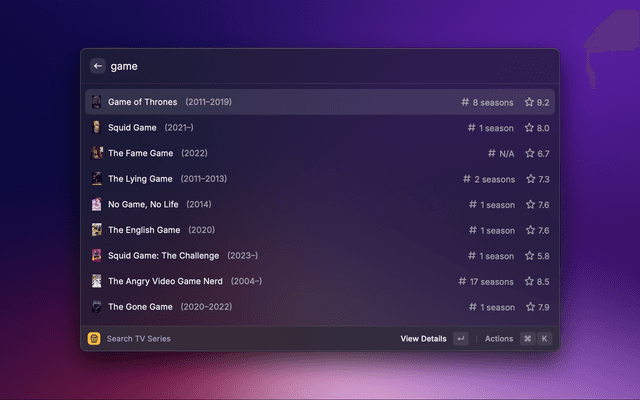 A Raycast extension that lets you easily open your favorite film or tv series on IMDb.