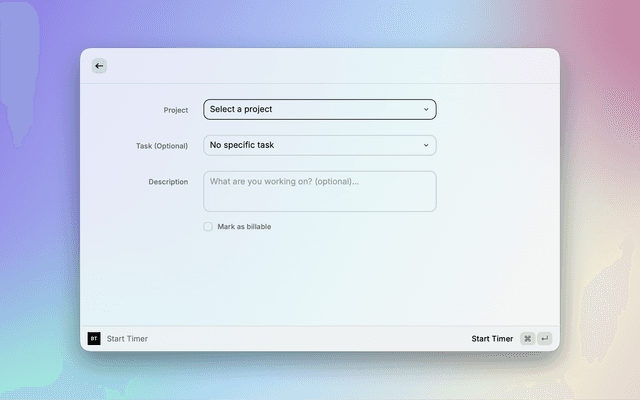 - Edit Timers - Modify existing timer entries (start/end times, project, task, description)