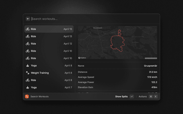 Your workouts from Strava, now at your fingertips.