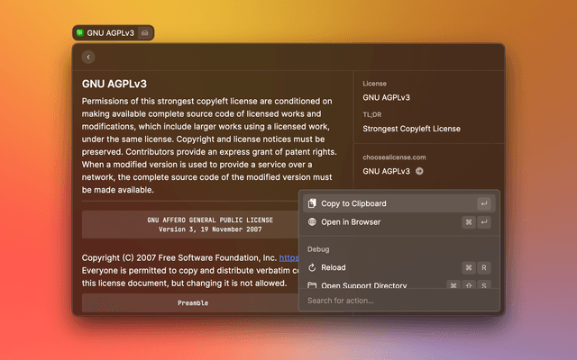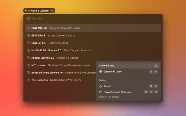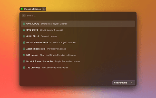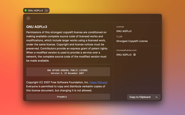 Read, copy, and paste Markdown licenses from choosealicense.com
